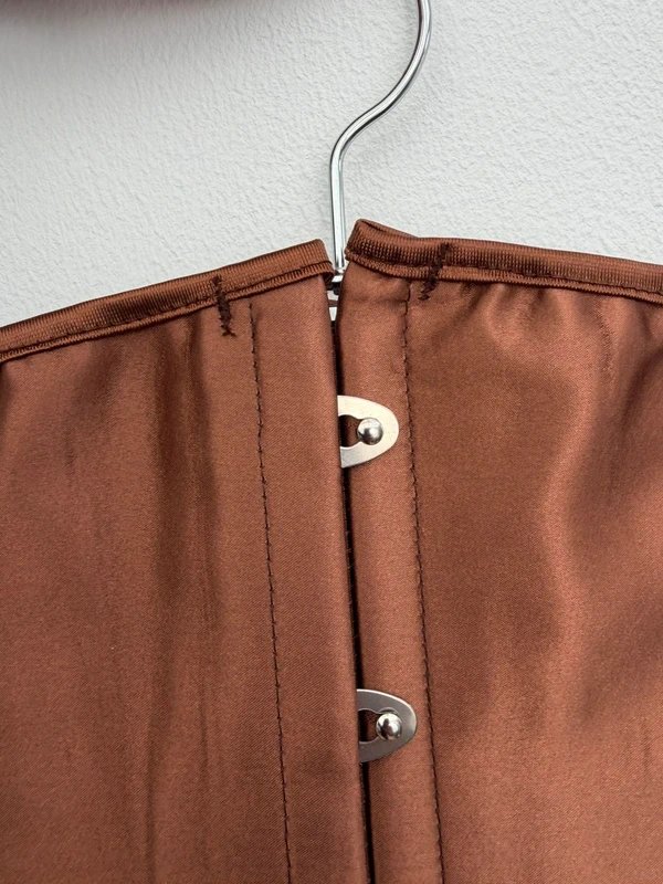 Brown Satin Waist Corset — the perfect addition to your costume collection. Designed in rich brown, this waist corset features proper boning for a secure fit. Crafted from luxurious satin, it offers a smooth and elegant finish. Ideal for sizes 8/10/12.