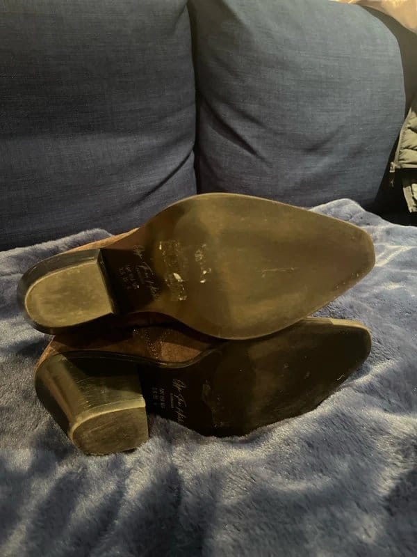 View Vinted's returns policyStylish brown suede cowboy heel ankle boots from ASOS. These boots feature a 3-inch heel and are in excellent condition, worn only twice. Perfect for adding a touch of western flair to any outfit.