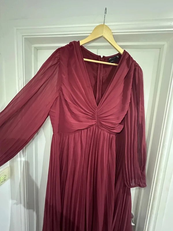 This burgundy long sleeve, V-neck dress from ASOS is perfect for special occasions like weddings. The flowy silhouette ensures comfort and grace.