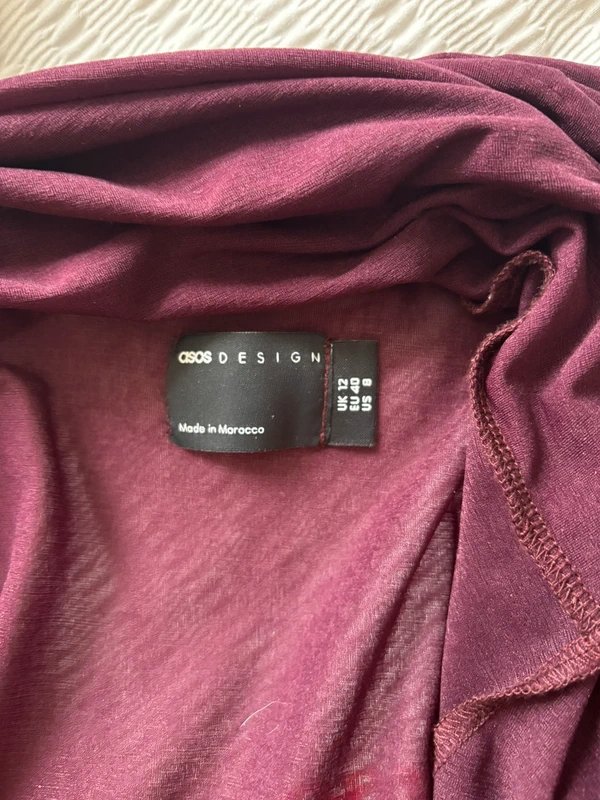 The ASOS Burgundy Mesh Sheer Maxi Dress with Low Back is available in sizes M.