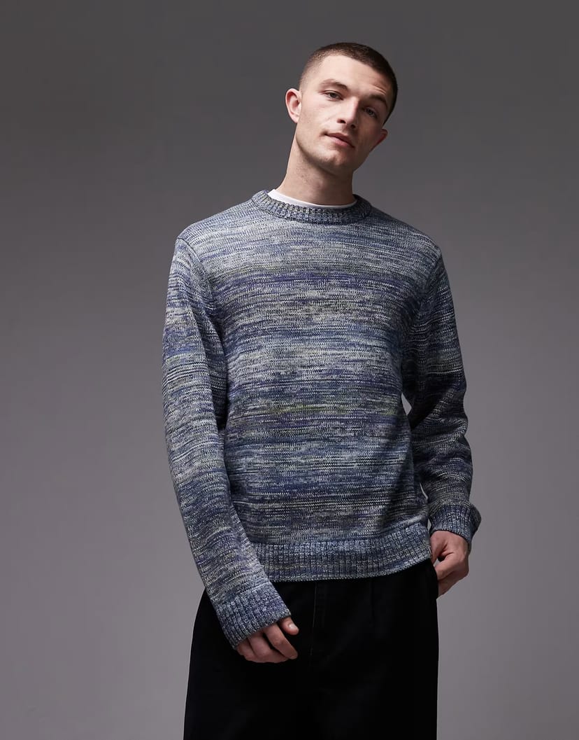 The Carhartt WIP Blue and Grey Space Dye Knit Jumper is available in sizes XXXL, XXL, XL, XS, L, M, S.