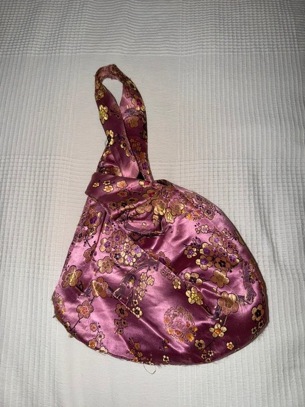 Beautifully crafted, the Chinese silk floral mini bag in pink adds an elegant touch to your ensemble. Perfect for any occasion, its silk material and floral design make it a standout piece.