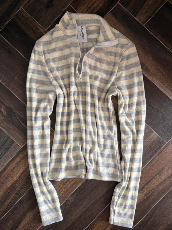 “Pair with grey joggers and white sneakers for a laid-back yet stylish look.”