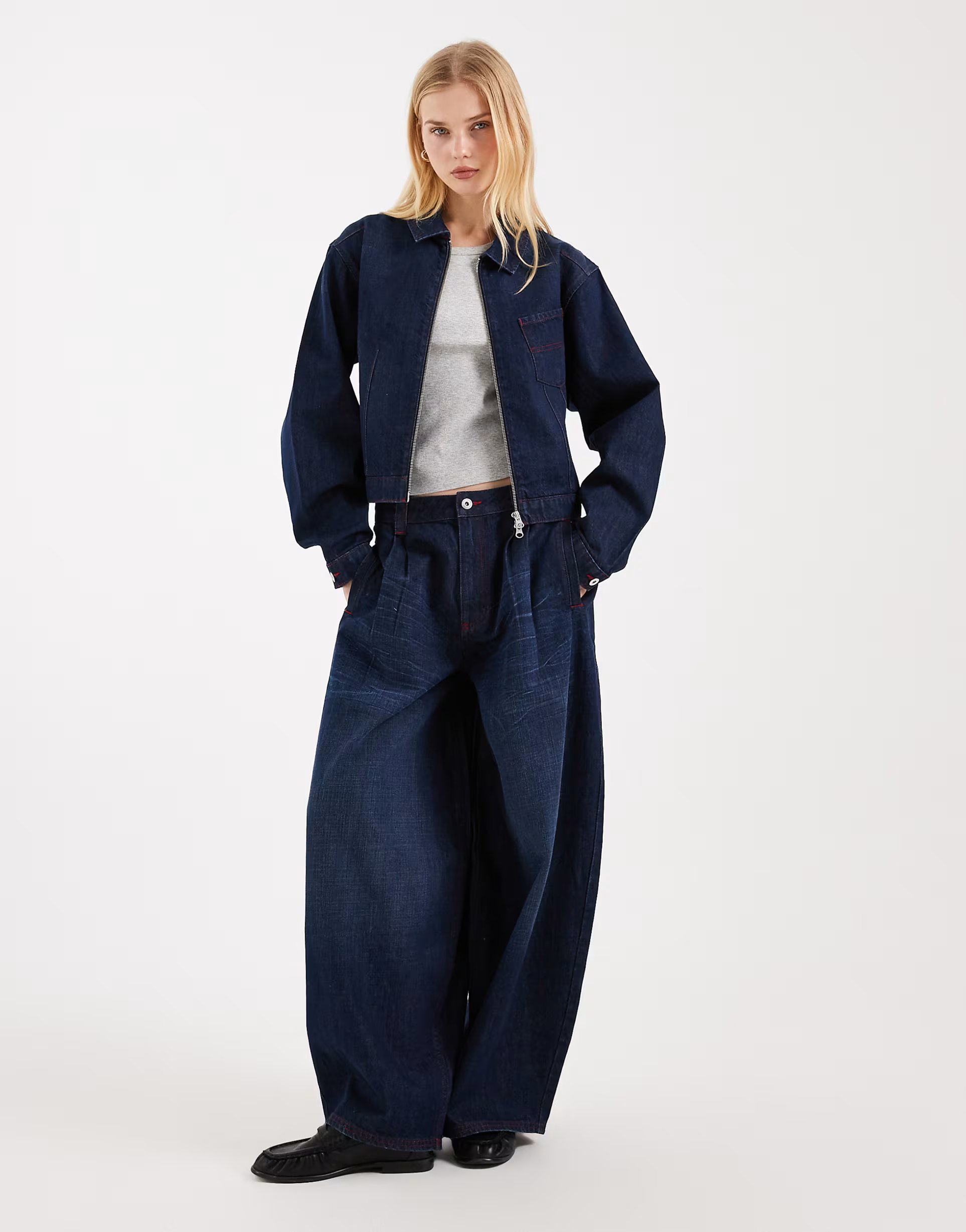 Designed with a balloon silhouette, this rinse wash co-ord from ASOS is perfect for a casual look. The pleats add a touch of texture while the zipper closure ensures a comfortable fit.