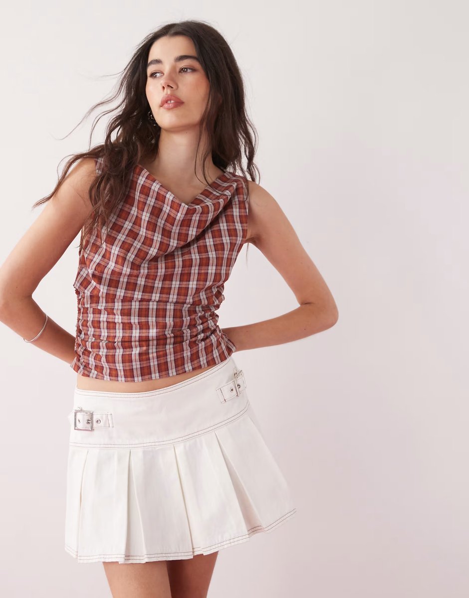 The ASOS Collusion Denim Mini Kilt Skirt in Ecru is ideal for casual, weekend.