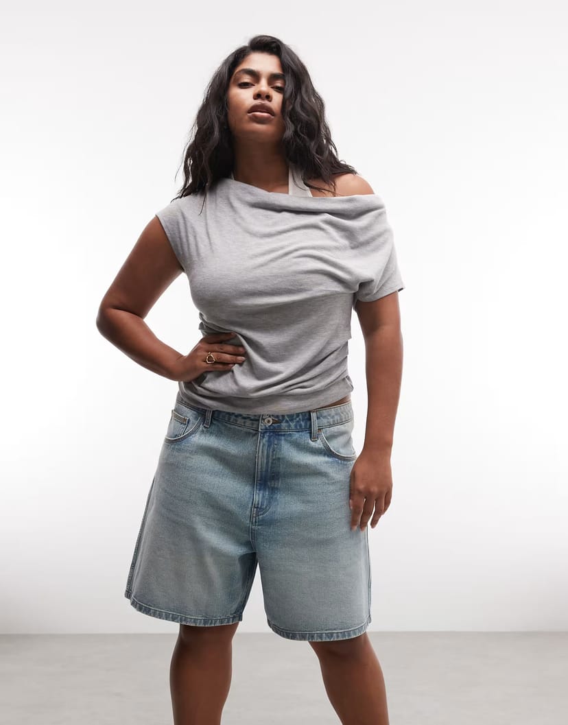 The ASOS COLLUSION Plus Lightwash Denim Short is ideal for casual, everyday.