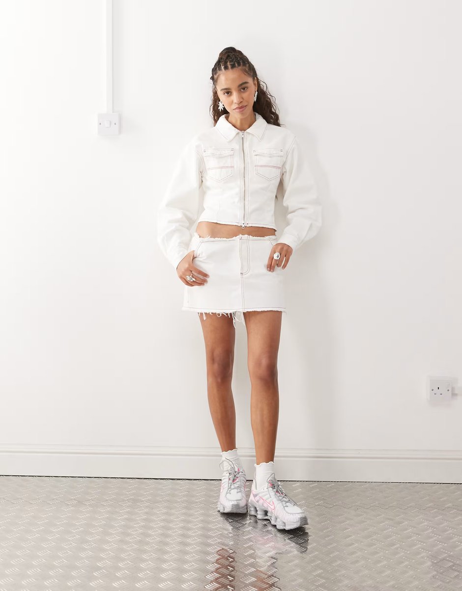 The ASOS Collusion Raw Hem Denim Mini Skirt in Ecru is ideal for casual, smart-casual.