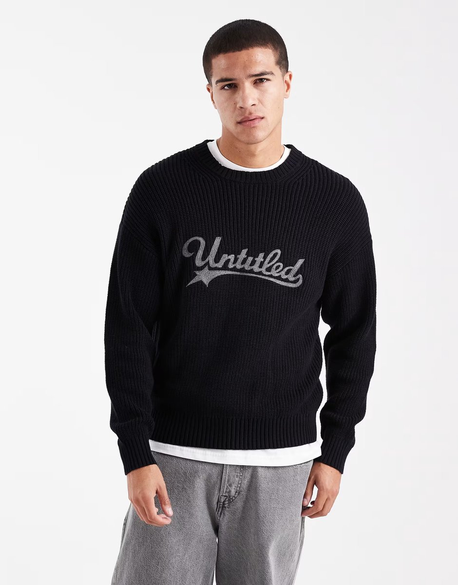 The ASOS Cotton On Box Fit Crew Knit in Navy is available in sizes XXXL, XXL, XL, XS, L, M, S.