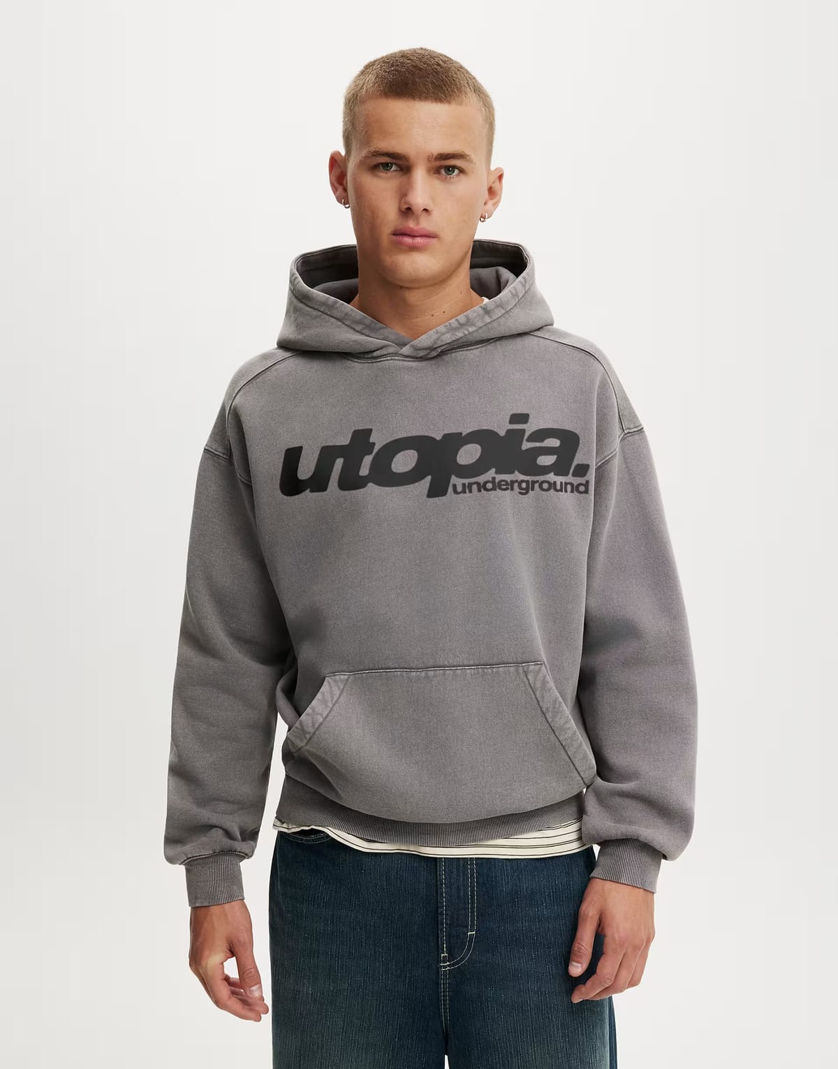 The ASOS Charcoal Box Fit Graphic Hoodie is ideal for casual, everyday.