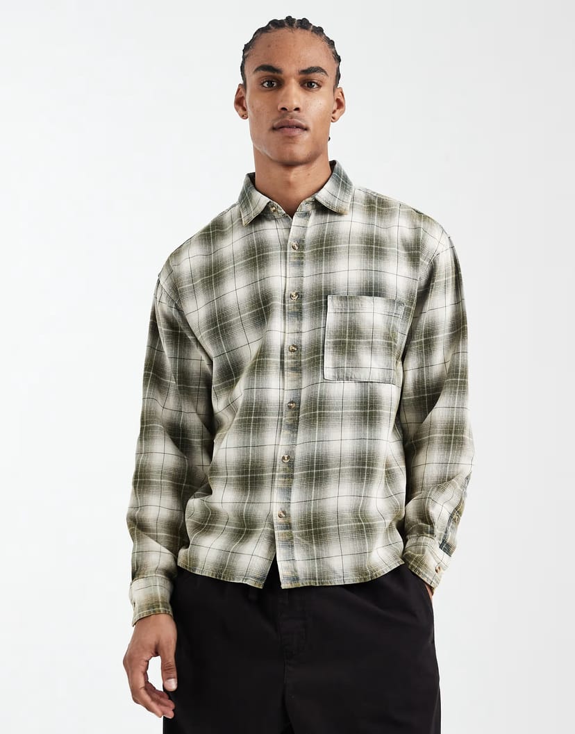 The ASOS Cotton On Hudson Long Sleeve Shirt in Green Check is available in sizes XXXL, XXL, XL, XS, L, M, S.