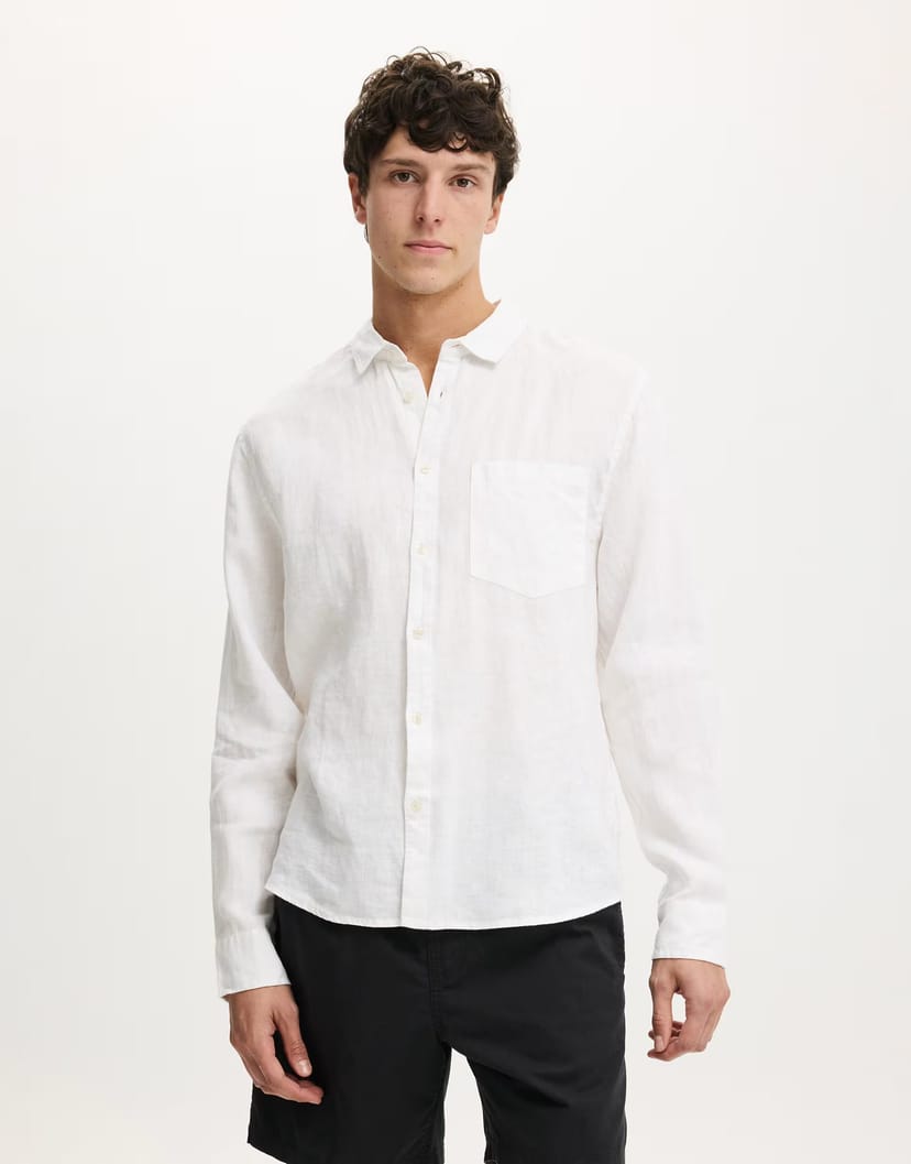 The ASOS Cotton On Relaxed Long Sleeve Shirt in White is made from linen.