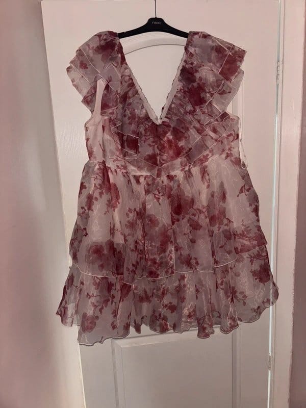 The ASOS Curve Pink Floral Ruffle Baby Doll Dress is ideal for evening, party, wedding.