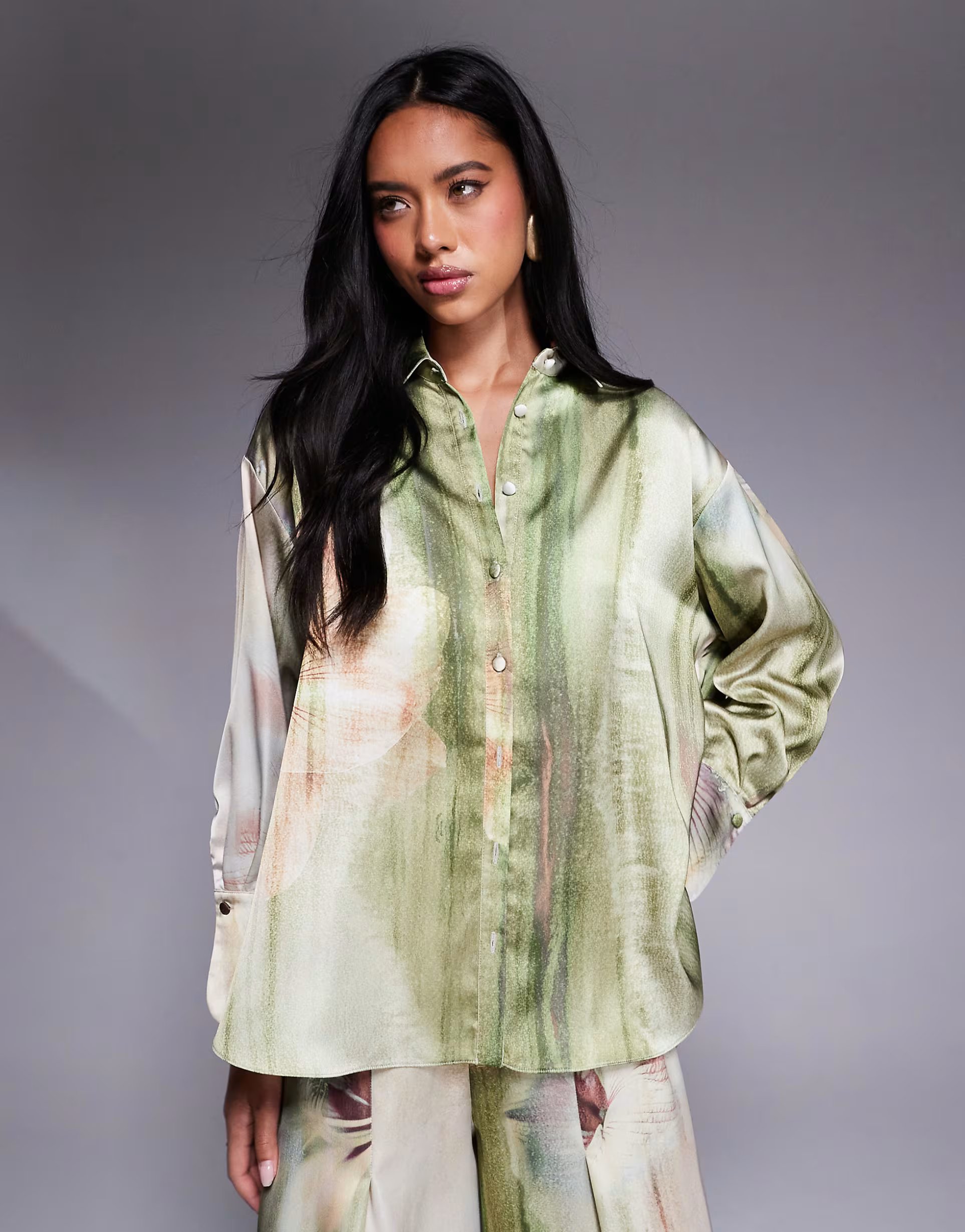 The ASOS Floral Print Satin Shirt Co-ord is made from satin.