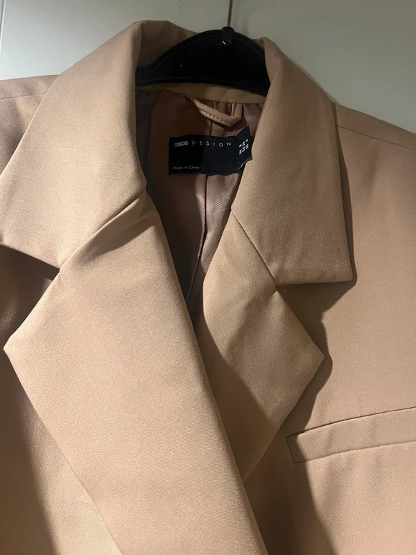 The ASOS Design Beige Cinched Blazer is available in sizes S.