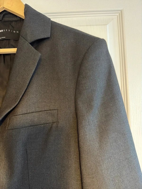 The ASOS Design Charcoal Longline Blazer is available in sizes S.