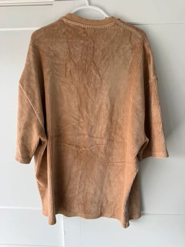 The ASOS Design Beige Cord T-Shirt is made from corduroy.