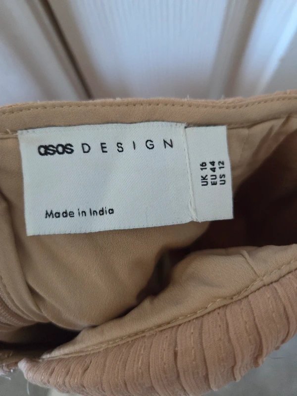 The ASOS Design Corset Sequinned Midi Dress in Pink-Beige is available in sizes XXL.