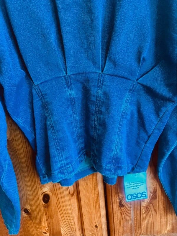 Stylish long sleeve denim top with a round neck and back zipper. Features an under bust corset style for a flattering fit. Perfect for casual or smart-casual occasions.