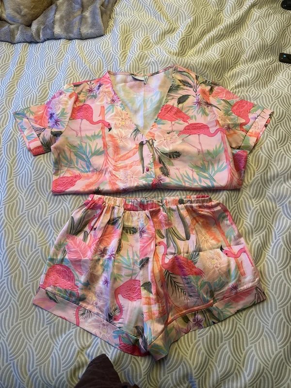 The ASOS Design Flamingo Satin Pyjama Set is ideal for lounge, casual, beach.