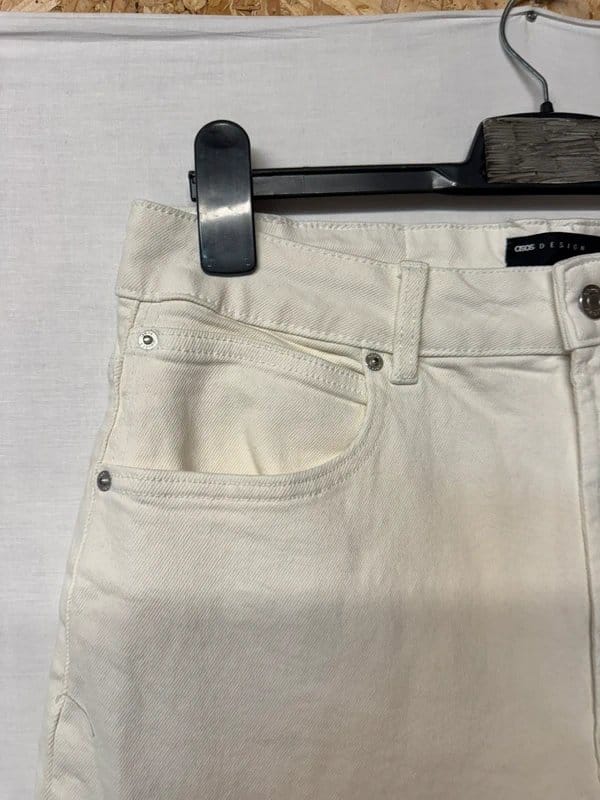 Stylish cream denim jeans by ASOS Design. Made from denim fabric, these jeans feature a straight leg silhouette and a mid-rise waist. Ideal for a casual look.