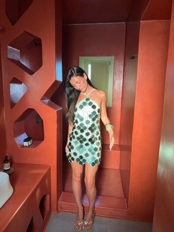“Pair with gold hoop earrings and a pair of strappy sandals for a glamorous summer look.”