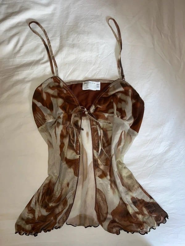 Sheer mesh cami top in size UK 18 from ASOS Design. Features a lace-up front detail and a flattering silhouette. Perfect for a whimsical Y2K look.