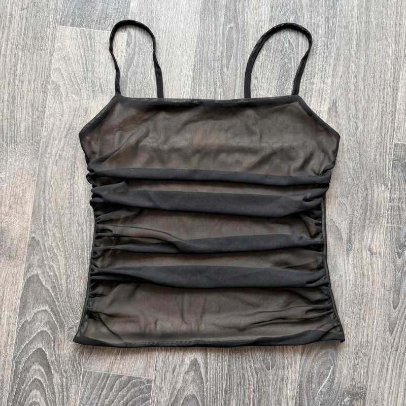 The ASOS Design Mesh Cami Top with Ruched Detailing is available in sizes M.