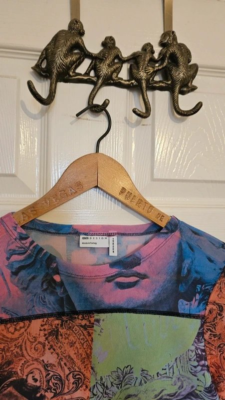 This cropped ASOS Design top features a Renaissance Print and an asymmetric hem, creating a bold and unique look. Pair it effortlessly with high-waisted jeans for a chic, contemporary outfit.