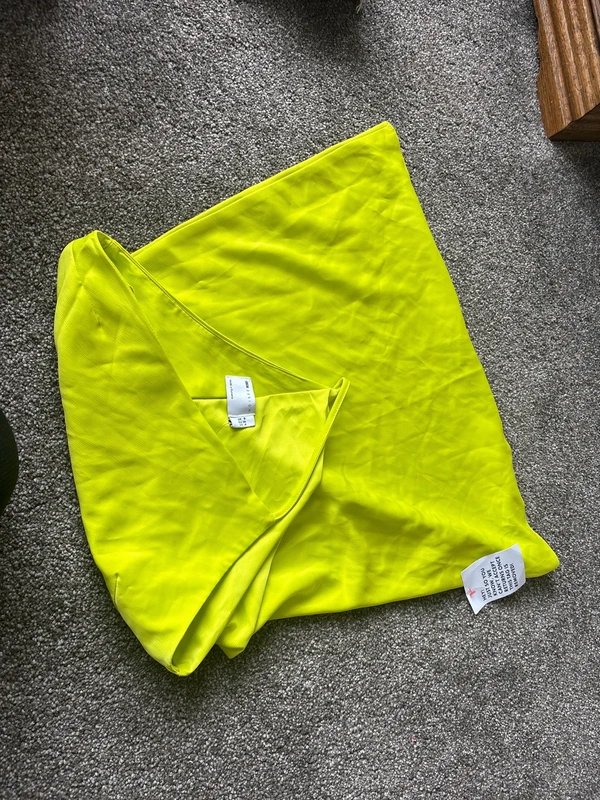 The ASOS Design One Shoulder Mini Dress in Lime is available in sizes S.
