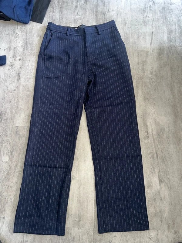 The ASOS Design Pinstripe Trousers in Navy is available in sizes L.
