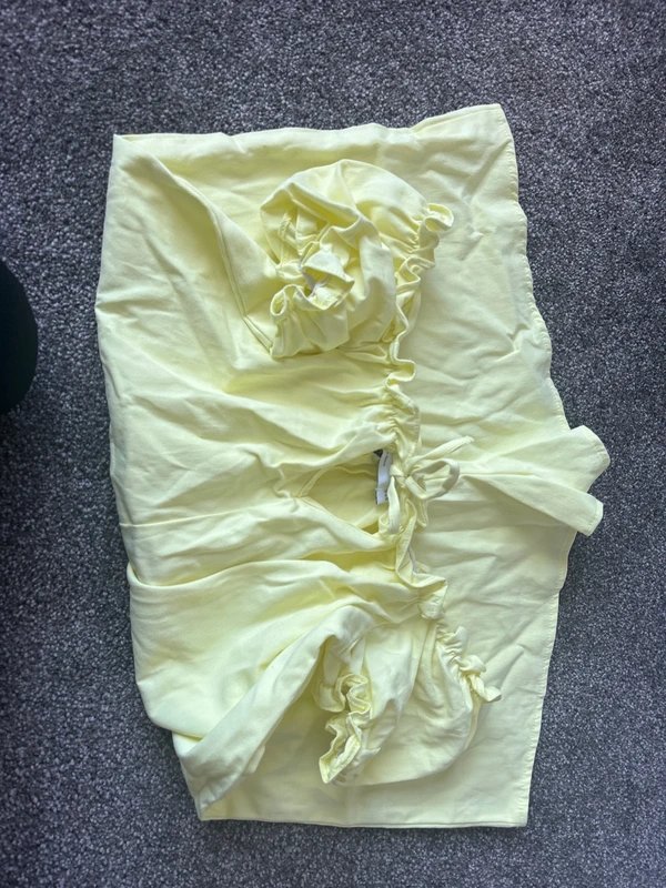 This lemon yellow ASOS Design playsuit is perfect for summer. It can be worn Bardot style or on the shoulder, offering a versatile and stylish option for warm weather.