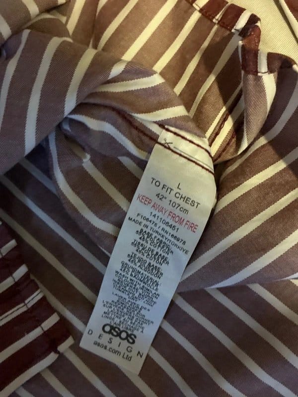 The ASOS Design Burgundy & White Striped Shirt is made from cotton, polyester.