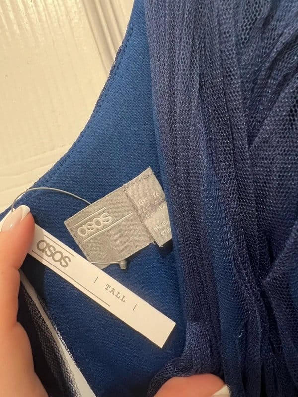 See all outfit ideasElegant navy blue tulle bridesmaid dress from ASOS Design. Perfect for special occasions with its delicate fabric and flattering fit.