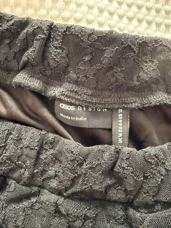 The ASOS Black Lace Mini Skirt is available in sizes L.