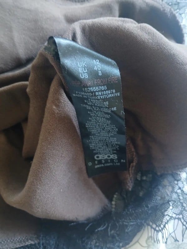 The ASOS Design Brown Lace Slinky Top is made from viscose, polyester.