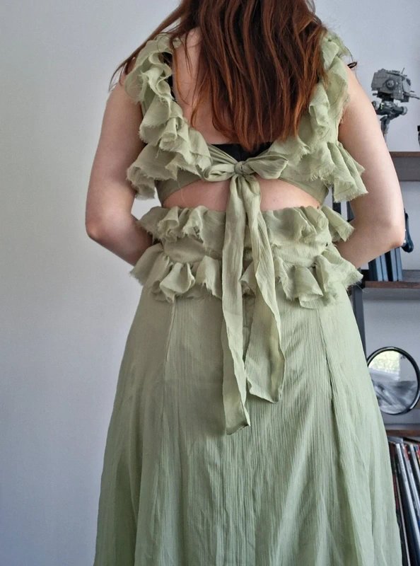 The ASOS Design Light Green Tulle Midi Dress with Ties is made from tulle.