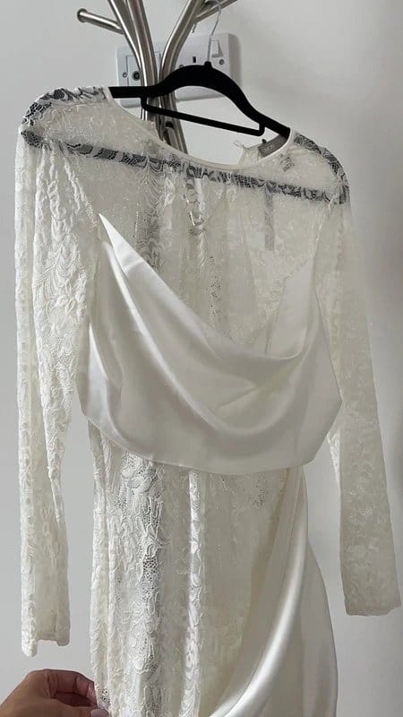 The ASOS Design White Lace Drape Mini Dress is made from lace, satin.