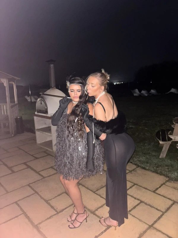 The ASOS Luxe Grey Tassel Beaded Dress is made from beaded fabric.