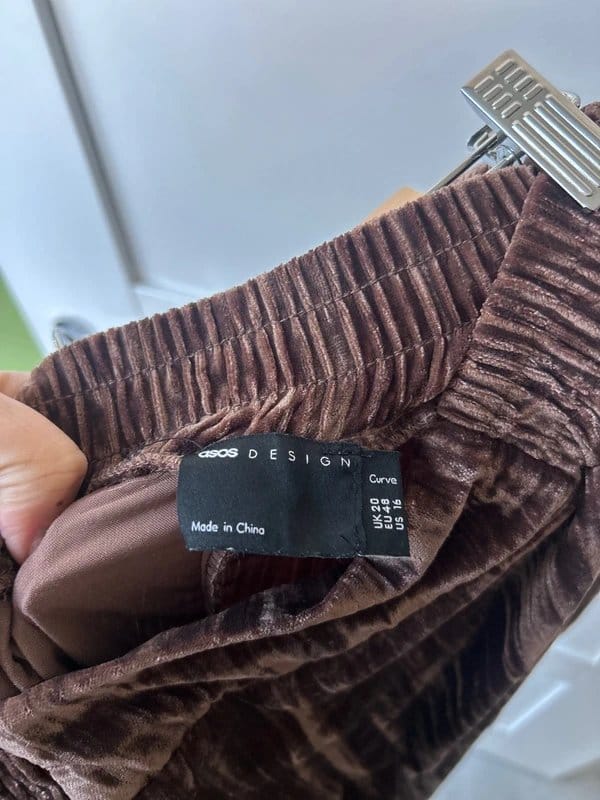 The ASOS Design Mauve Velvet Crinkle Trousers Size 20 is available in sizes XL.