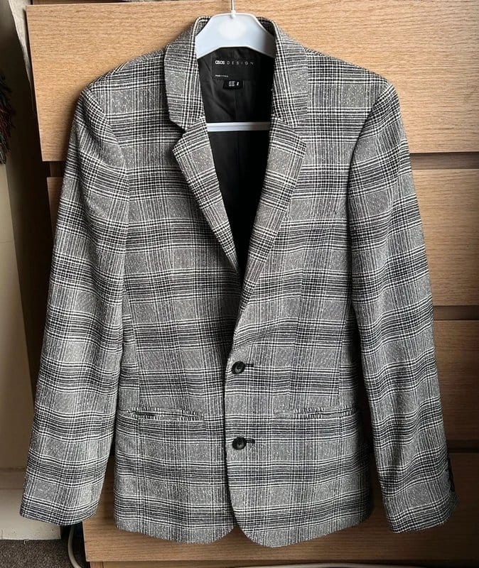 “Pair with dark wash slim jeans and a white shirt for a smart-casual look.”