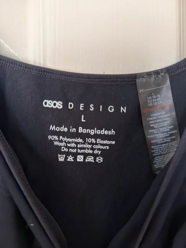 This black shapewear bodysuit by ASOS Design is crafted from a blend of 90% Polyamide and 10% Elastane, providing a smooth and compressive fit. Ideal for shaping and smoothing the silhouette, it is perfect for wearing under outfits to enhance your figure.
