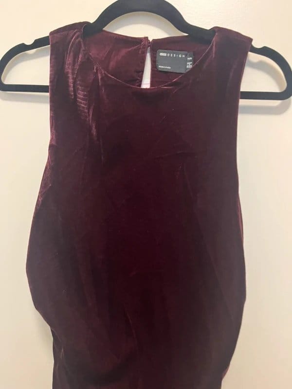 The ASOS Maroon Velvet Midi Dress is available in sizes M.