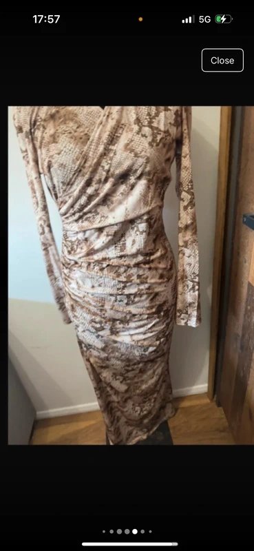 The ASOS Design Brown Snake Print Maxi Dress is available in sizes S.
