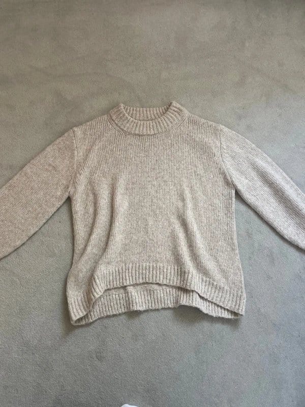 The ASOS Design Beige Oversized Knitted Jumper is available in sizes M.