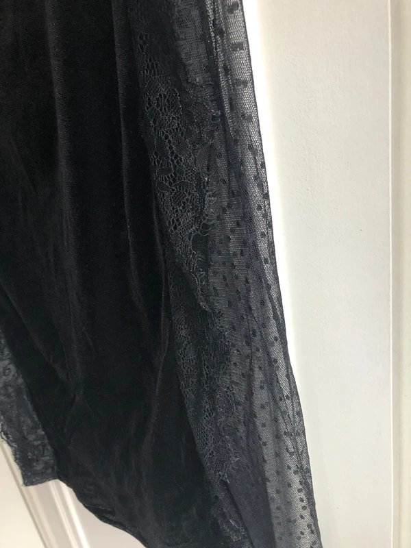 The ASOS Design Black Velvet Skirt with Mesh Detail is available in sizes M.