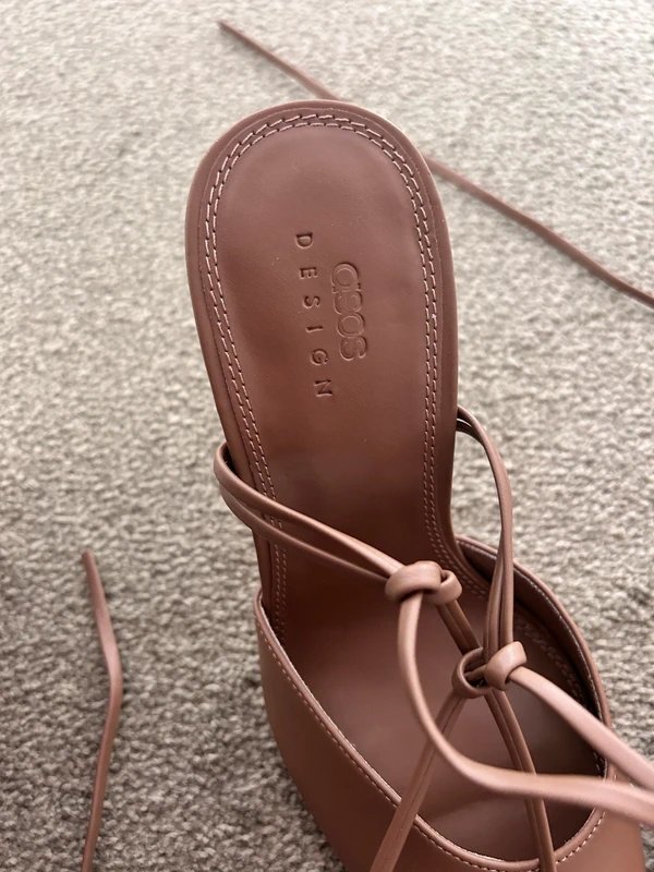 The ASOS Design Nude Strappy Heels with Leg Ties is made from faux leather.