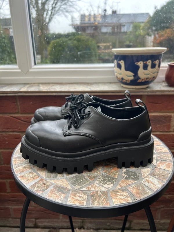 Crafted with black chunky lace-up detailing, these Mary Jane’s provide a chunky aesthetic. Perfect for an edgy and unique look.