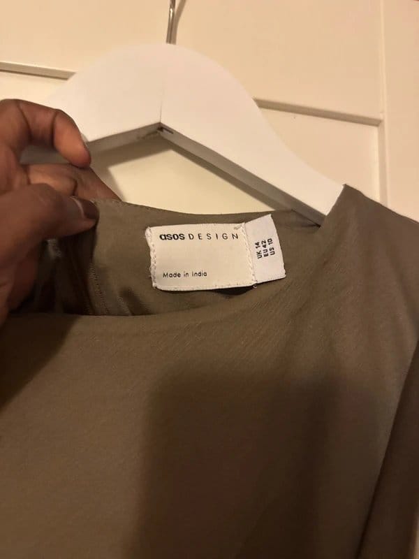 The ASOS Design Mink Brown Satin Chiffon Dress is available in sizes M.