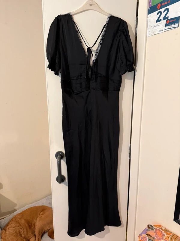 The ASOS Design Embroidered Silk Dress in Black is available in sizes M.