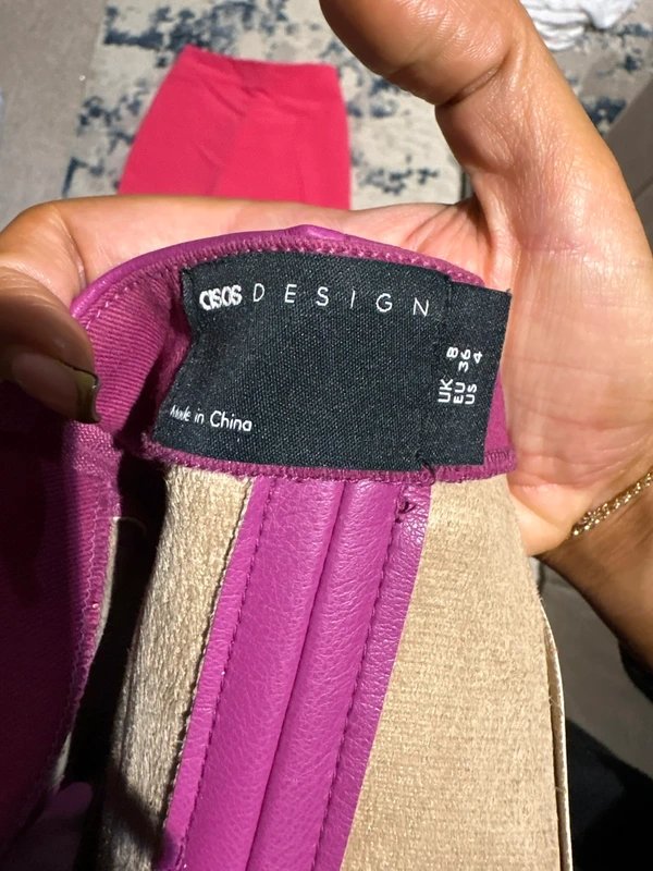 The ASOS Design Faux Leather Corset in Purple is made from faux leather.